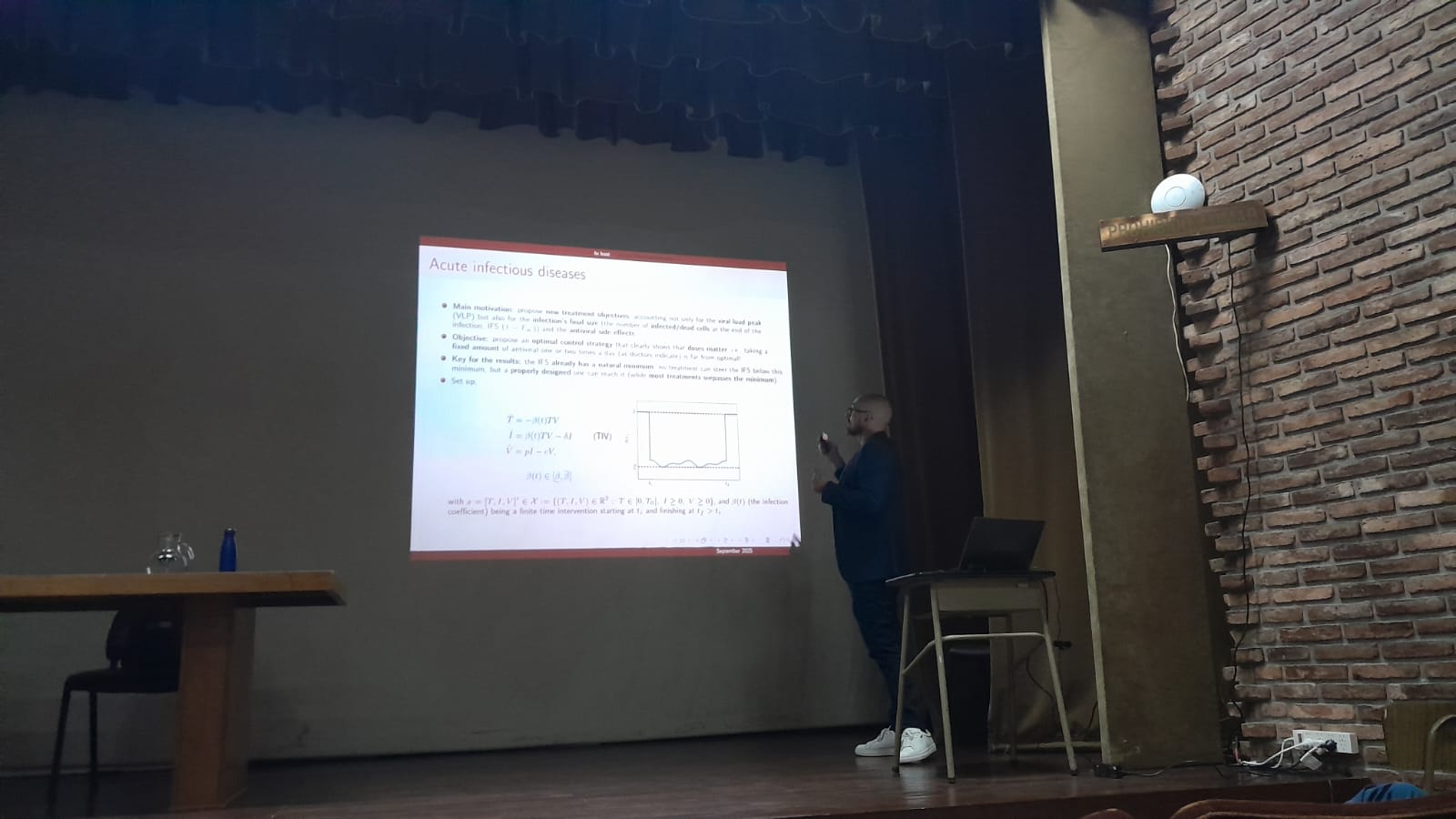 Durante su charla "Modelado Dinámico y Control de Sistemas Biomédicos: Evitando que el remedio sea peor que la enfermedad", el Dr. González presentó cómo las estrategias de control basadas en optimización, como el Control Predictivo Basado en Modelos (MPC), pueden aplicarse a problemas biomédicos complejos, incluyendo COVID-19, HIV, diabetes tipo 1 y tuberculosis.