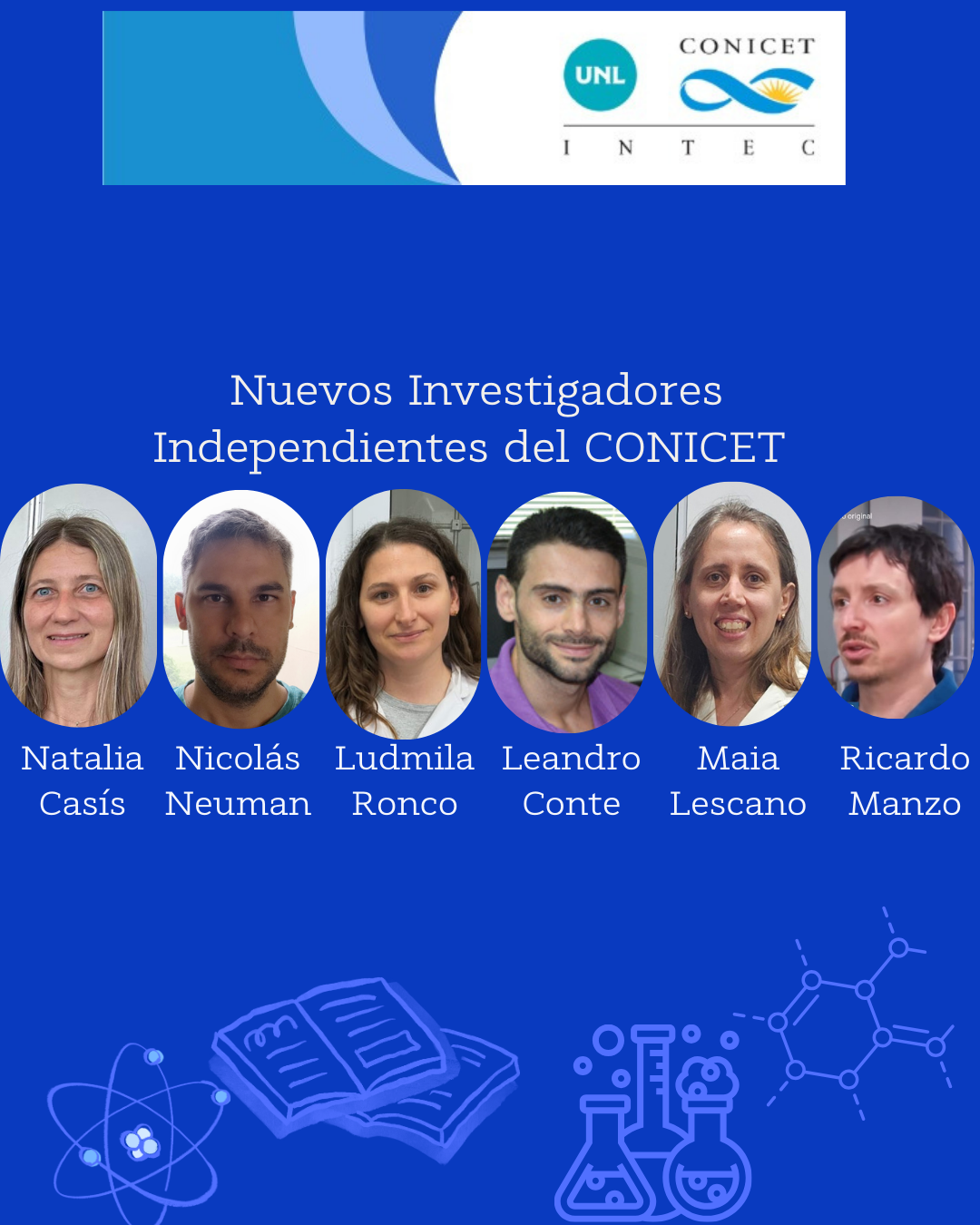 El INTEC felicita a los investigadores que han sido promovidos a la categoría de Investigador Independiente del CONICET, en reconocimiento a la calidad de su labor científica, y les desea muchos éxitos en esta nueva etapa: Natalia Casis, Ludmila Ronco, Maia Lescano, Nicolás Neuman, Leandro Conte y Ricardo Manzo.