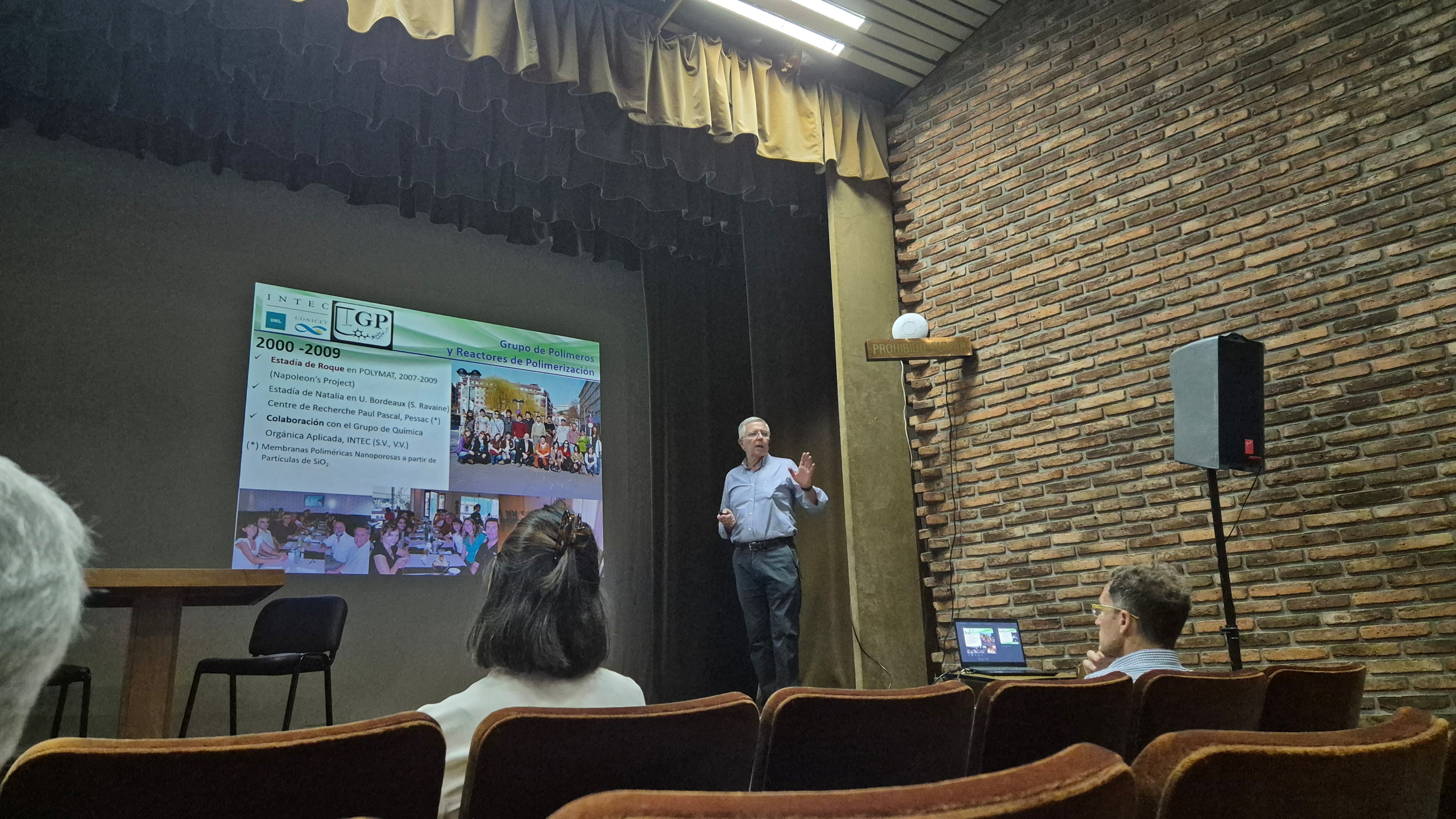 Durante la exposición, el Dr. Gugliotta realizó un recorrido histórico por la trayectoria del Grupo de Polímeros y Reactores de Polimerización desde sus inicios en 1981, repasando sus líneas de investigación, la influencia de los procesos industriales y los principales hitos que marcaron más de cuatro décadas de trabajo. Además, presentó la estructura actual del grupo y sus perspectivas a futuro, acompañando el relato con imágenes, anécdotas y material histórico.