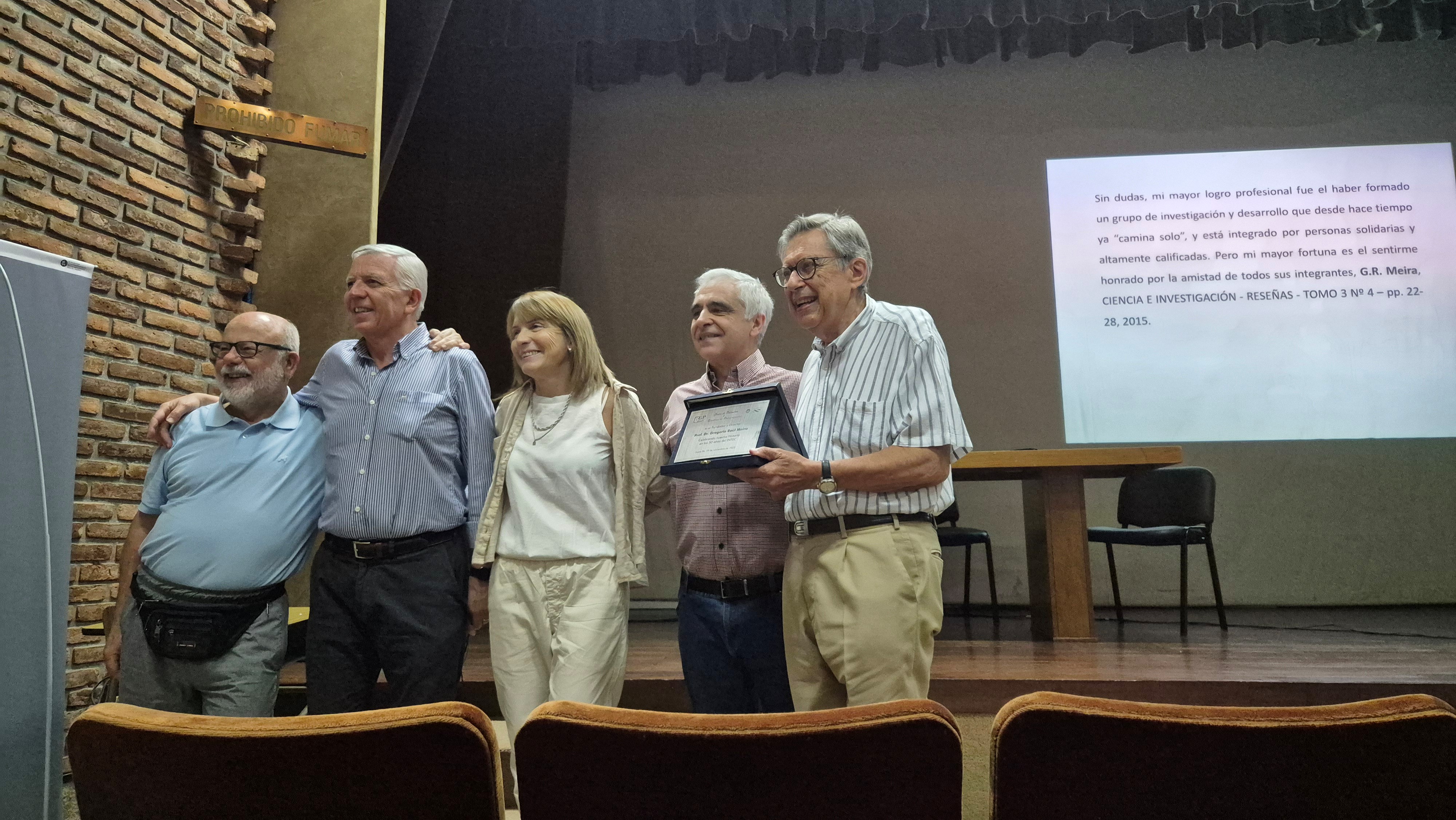 Al cierre del evento, el Grupo de Polímeros y Reactores de Polimerización entregó un reconocimiento al fundador del grupo, el Dr. Gregorio Meira, quien se encontraba presente en el auditorio.